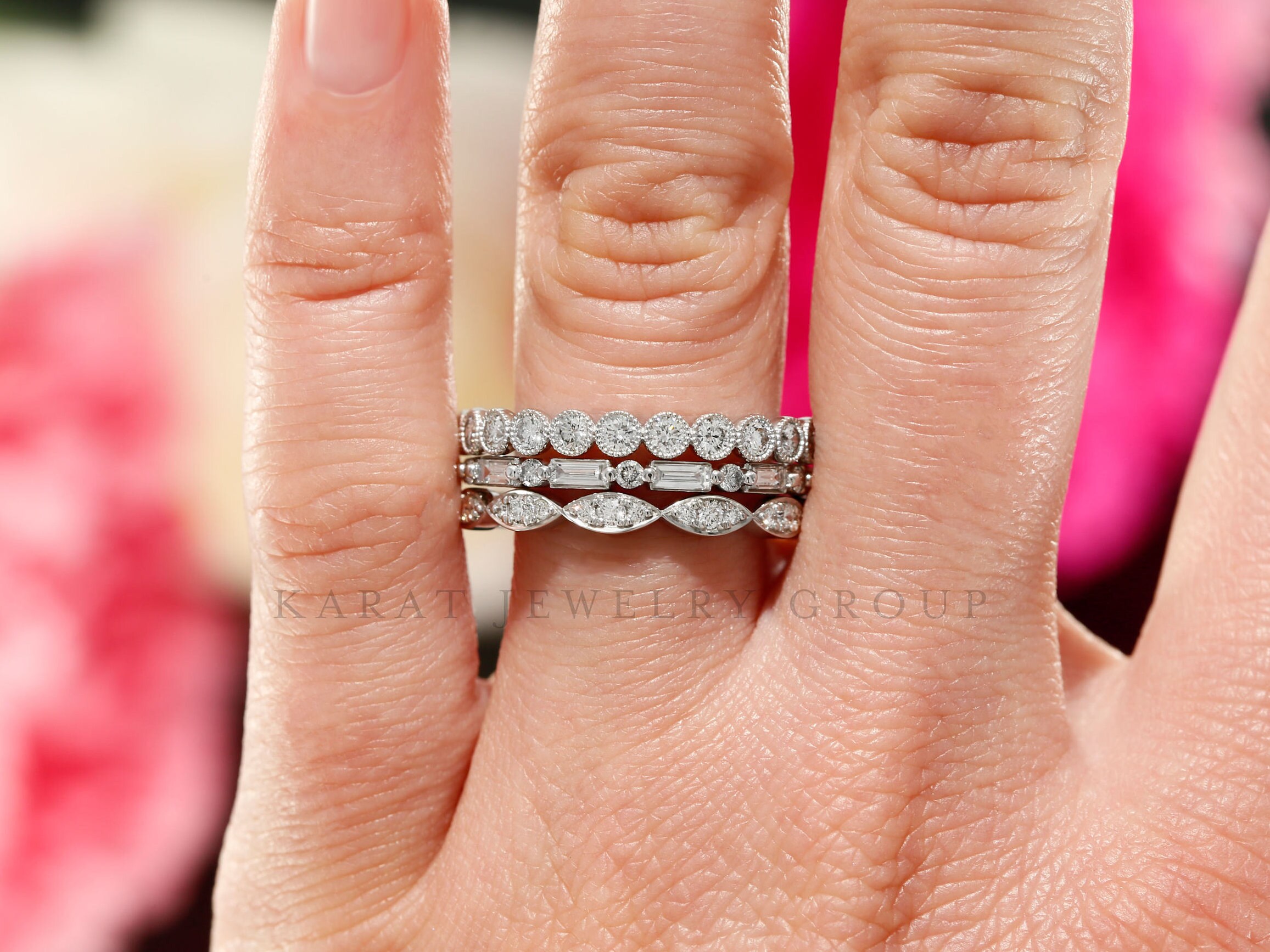 Diamond Band Stack Set Of 3 Wedding Bands In 14k White Gold Etsy